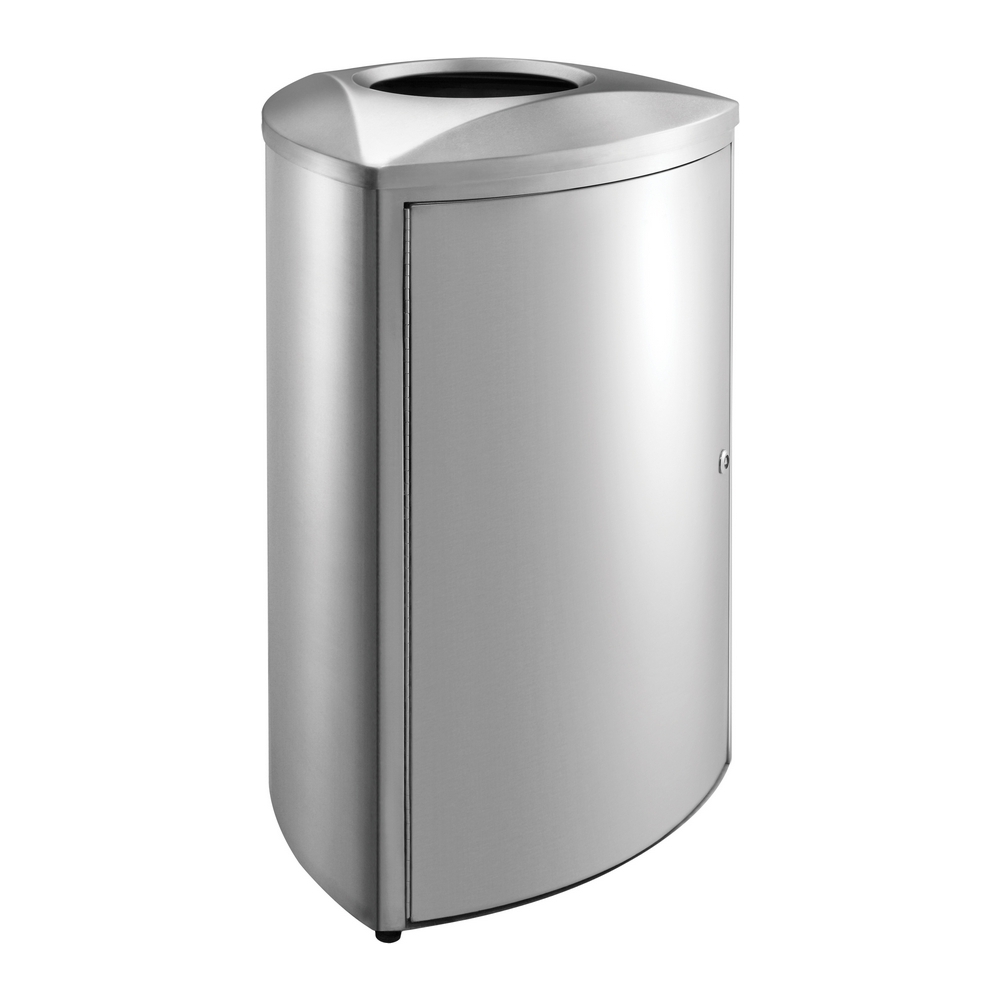 Stijlvolle driehoekige afvalbak met open top en dichte deur. Voorzien van kunststof binnenbak.