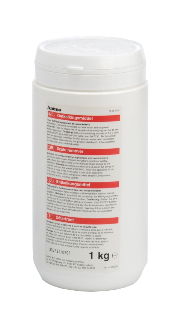 Animo is een echte specialist als het aankomt op koffiemachines. Omdat ook deze machines wel eens last kunnen hebben van kalkaanslag, bracht Animo dan ook dit ontkalkingsmiddel op de markt. Zoals steeds aangepast aan de noden van haar cliënteel – aldus in een praktische bus van 1 kilogram. In tegenstelling tot andere ontkalkingsmiddelen werd deze ontkalker speciaal ontwikkeld om apparatuur te ontkalken.