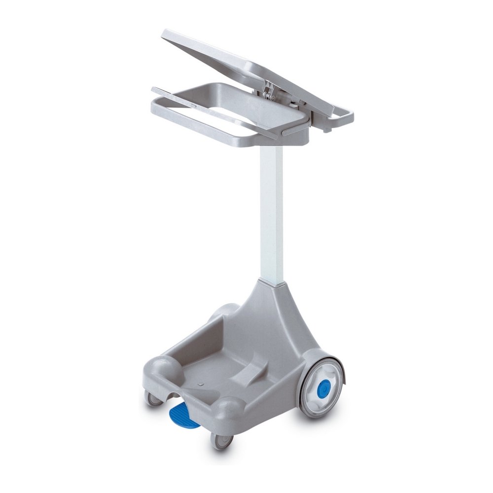 Robuuste verrijdbare afvalzakhouder van 100% gerecycled kunststof en aluminium voor maximale stevigheid en duurzaamheid. De afvalzakhouder met pedaal is voorzien van afvalzak fixing beugels en een kunststof deksel. Makkelijk verrijdbaar d.m.v. stevige handgreep en twee grote en twee kleinere rubberen wielen. Conform HACCP richtlijnen.