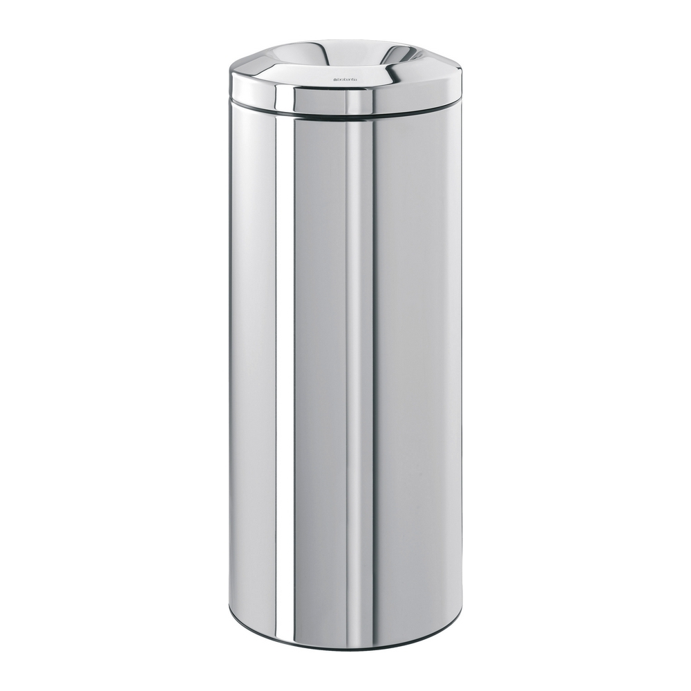 Ronde RVS papierbak met vlamdover en metalen binnenemmer.
