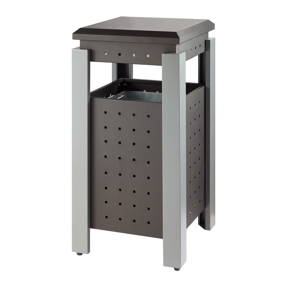 Afvalbak van gepoedercoat staal met afdak en voorzien van metalen binnenbak.