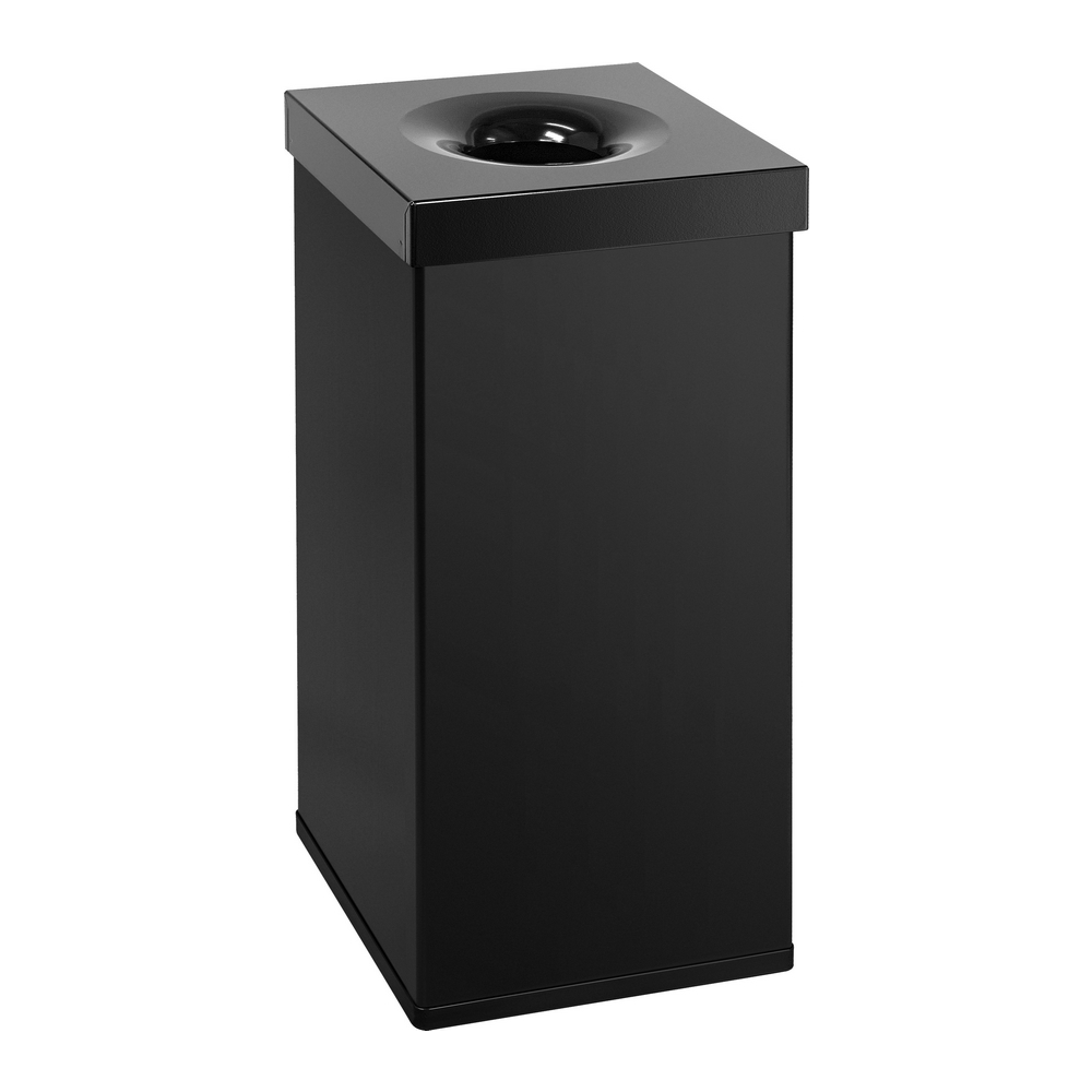 Vierkante vlamdovende papierbak. Onderbak vervaardigd uit hoogwaardig aluminium of RVS en deksel van RVS, alle onderdelen zijn gepoedercoat.