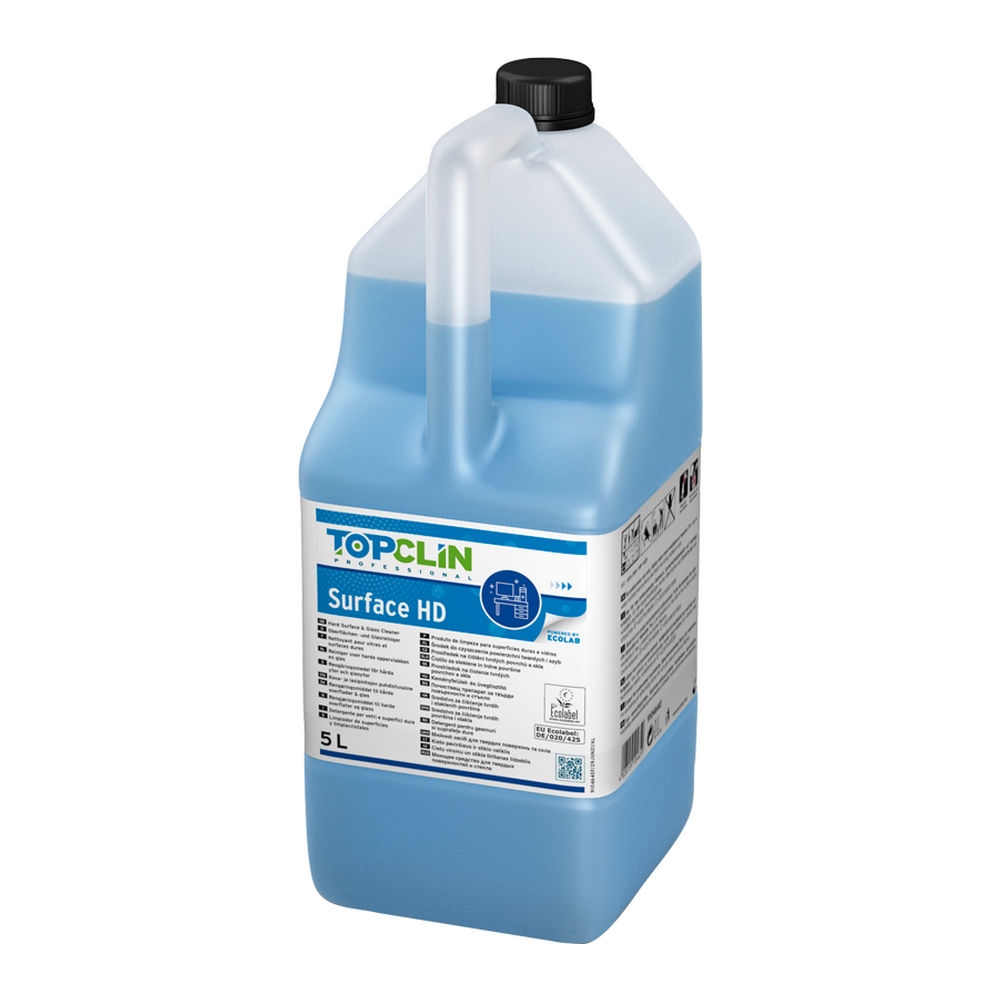 TOPCLIN Surface HD is een supergeconcentreerde, milieuvriendelijke, dagelijkse onderhouds- en glasreiniger die gemakkelijk vet en vuil verwijdert en oppervlakken schoon maakt met een streepvrije glans.