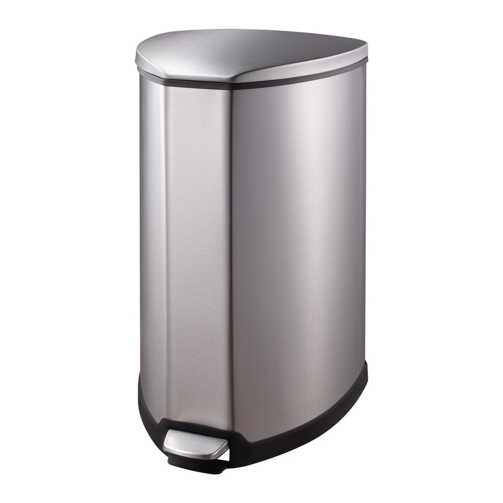 Opvallende, driehoekige pedaalemmer voorzien van kunststof binnenemmer en gedempt sluitend deksel.