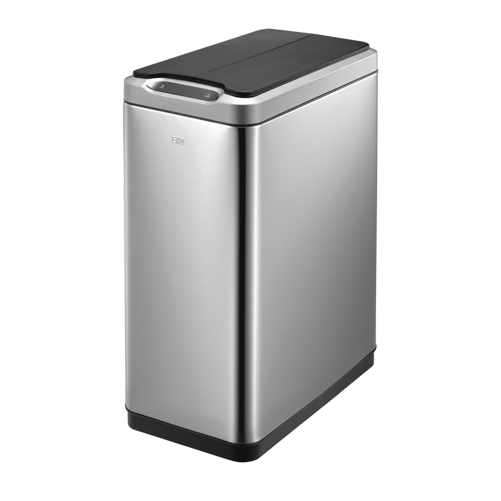 Stijlvolle afvalbak van geborsteld RVS met fingerprint proof coating en kunststof binnenemmer. Het sensormechanisme voorzien van touch switch zorgt ervoor dat de afvalbak zowel d.m.v. een sensor als via de touch knoppen te openen en sluiten is. Door het slanke design uitermate geschikt voor smalle ruimten. Het geruisloos sluitend deksel opent in twee delen waardoor het gemakkelijk onder werkbladen past. De sensor zorgt voor een hygiënisch gebruik van de afvalbak. Door het afneembare deksel is de afvalzak eenvoudig te wisselen. Werkt op 6 AA batterijen (niet inbegrepen).