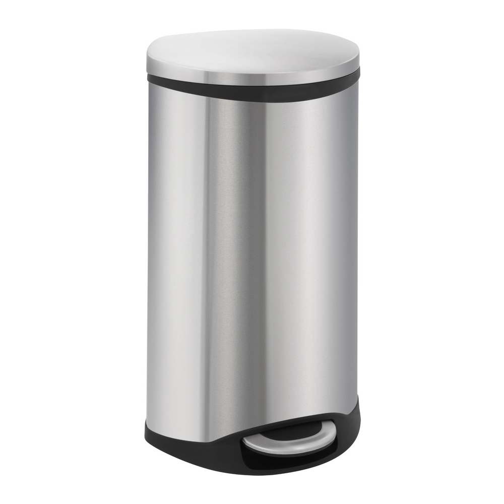 Opvallende schelpvormige pedaalemmer voorzien van gedempt deksel en kunststof binnenemmer. Fingerprint Proof.