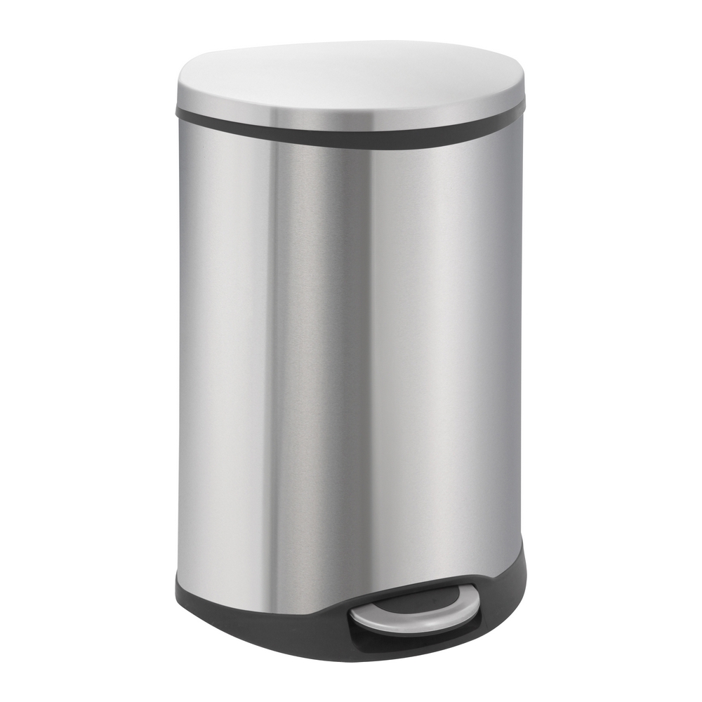 Opvallende schelpvormige pedaalemmer voorzien van gedempt deksel en kunststof binnenemmer. Fingerprint Proof.