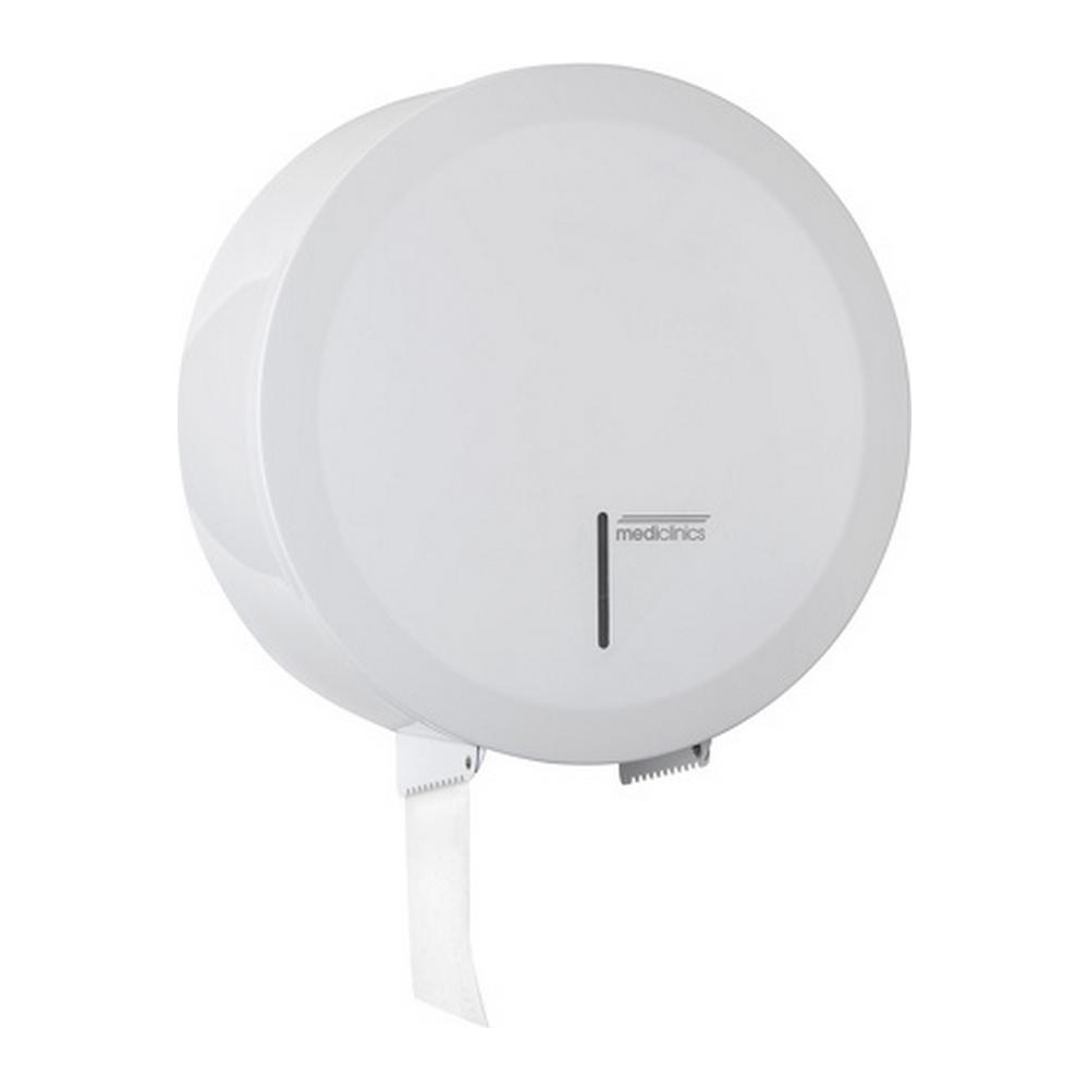 De Jumborol dispenser van Mediclinic is ook beschikbaar als stalen dispenser met een witte poedercoat! Deze grotere variant Jumbodispenser van Mediclinics heeft u een professioneel ogende en functionerende dispenser gemaakt van RVS met een ruwe tijdloze RVS look. Door deze afwerking is deze dispenser zeer geschikt in professionele omgevingen maar ook voor uw eigen sanitaire ruimtes! De dispenser is zeer onderhoudsvriendelijk en makkelijk schoon te houden. En het bijvullen is ook zo gedaan! Kortom een goed ogende dispenser waar u amper naar hoeft om te kijken. Maar dat doet u automatisch door de strakke look.