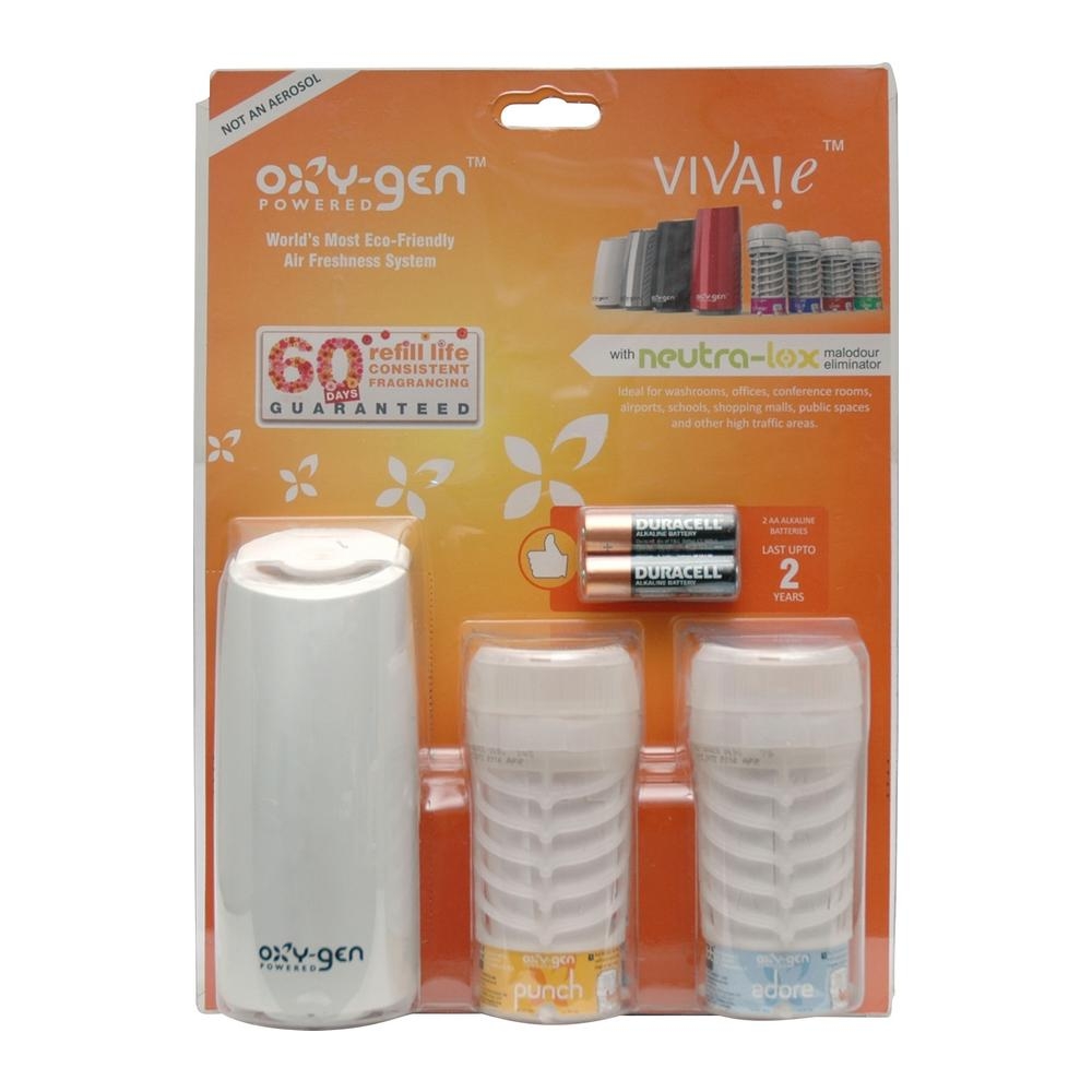 - Set met luchtverfrisser Oxy-Gen, 2 batterijen en 2 navullingen