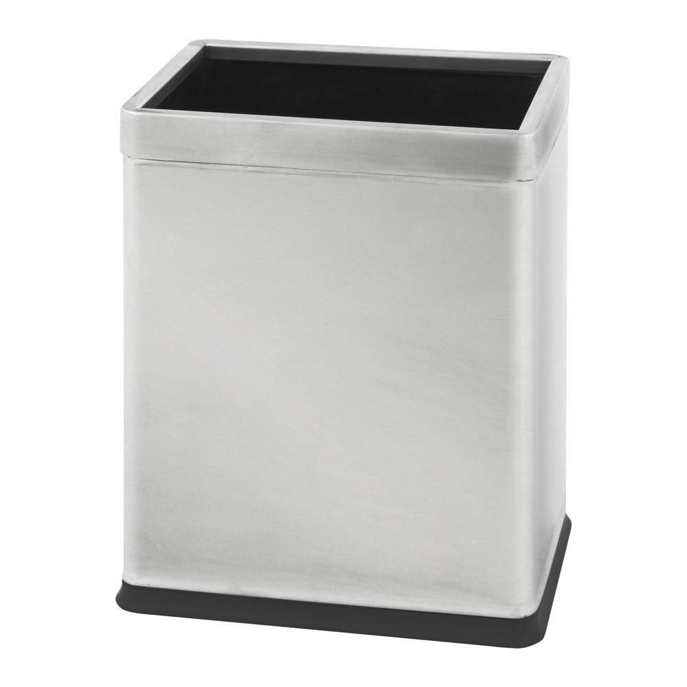 Dubbelwandige rechthoekige papierbak aan de buitenzijde van mat RVS. Stalen binnenzijde zwart gepoedercoat.