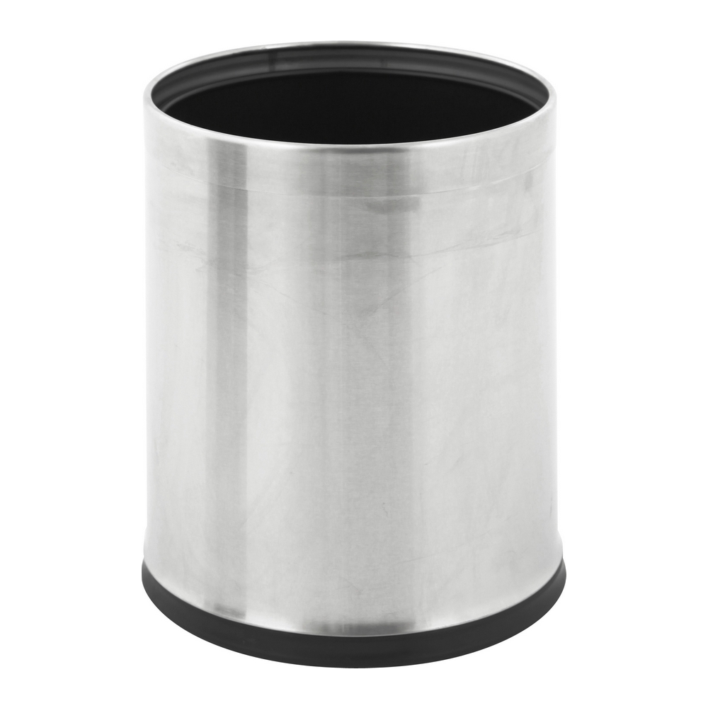 Dubbelwandige ronde papierbak aan de buitenzijde van mat RVS. Stalen binnenzijde zwart gepoedercoat.