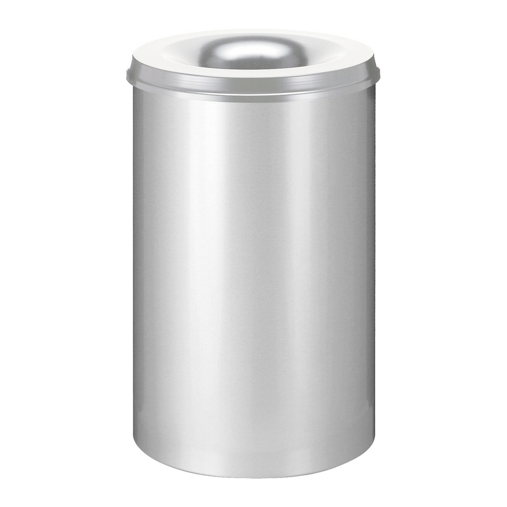 Ronde metalen papierbak uit één kleur of met zwart deksel.