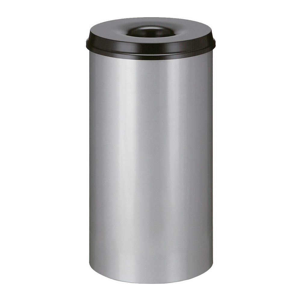 Ronde metalen papierbak uit één kleur of met zwart deksel.