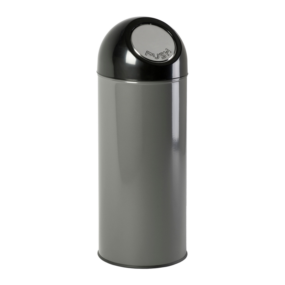 Onderbak van metaal, top van zwart kunststof met RVS pushdeksel. Met verzinkte binnenemmer.