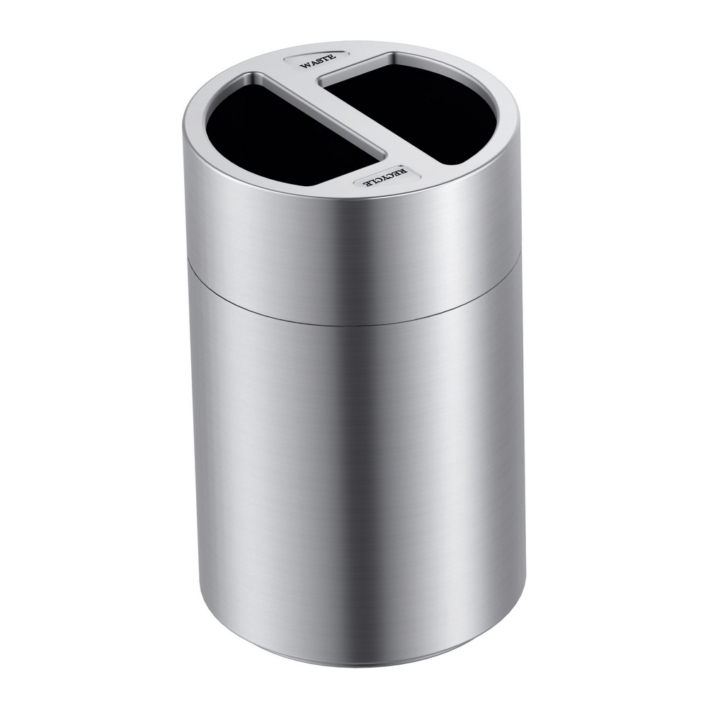 Grote design afvalbak van mat aluminium met twee kunststof binnenbakken (2x 60 ltr) voor het makkelijk scheiden van afval.