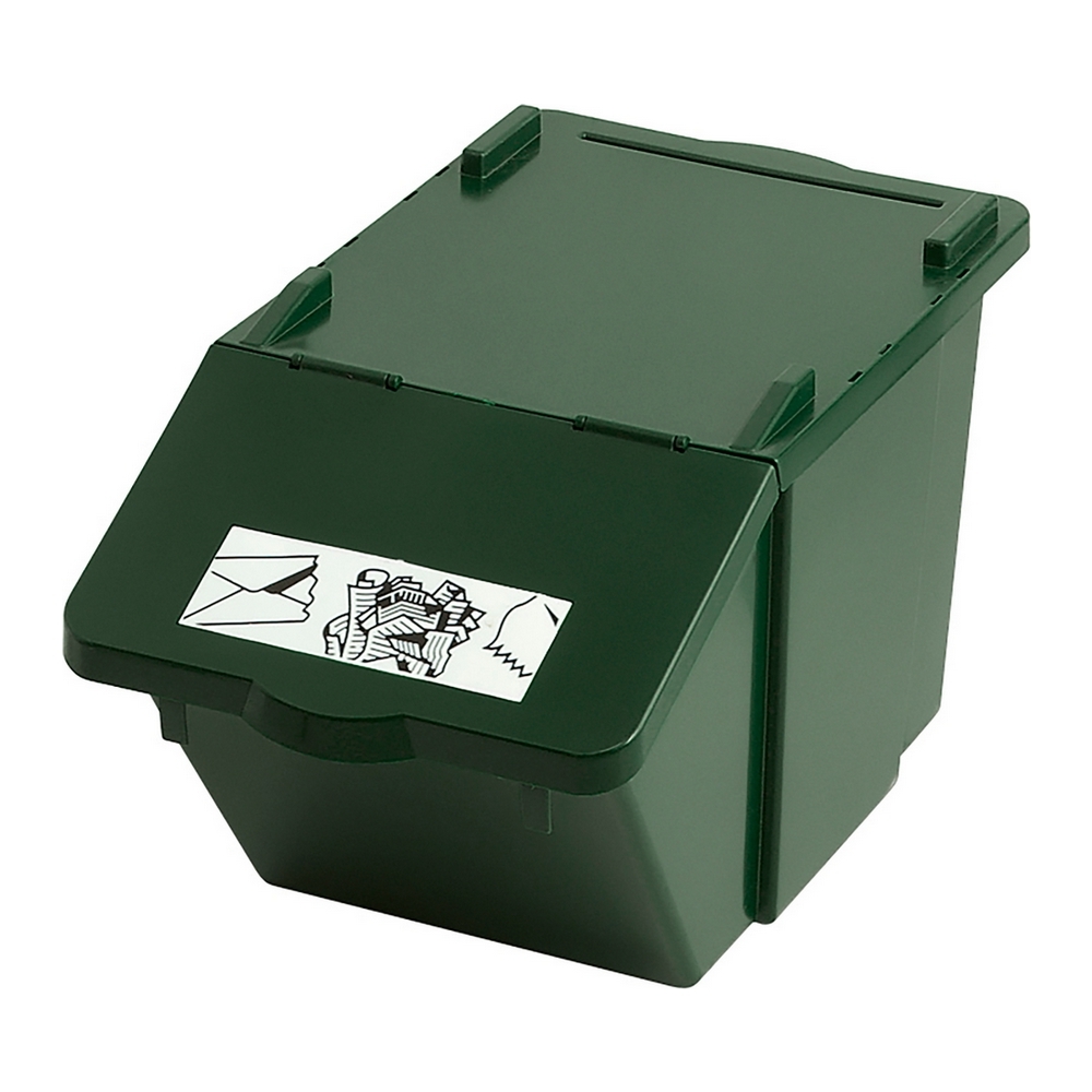 Kunststof stapelbak met gedeeltelijk opklapbaar deksel. Hierdoor kan het deksel geopend worden zonder de bak erboven te hoeven weghalen. Het deksel kan tevens in zijn geheel van de bak gehaald worden. Leverbaar in verschillende kleuren waardoor zeer geschikt voor afvalscheiding. Voorzien van afneembaar recycling-aanduiding.