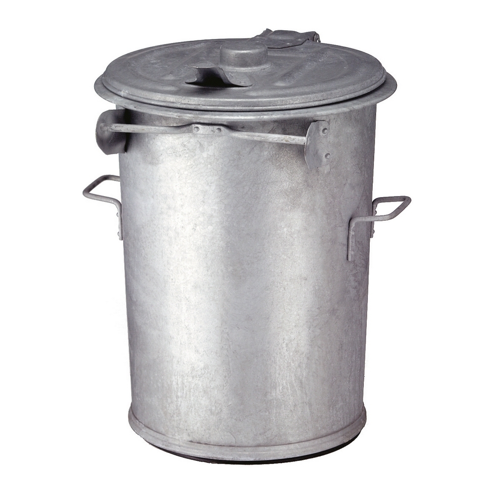 Vuurbestendige vuilnisemmer met deksel. Doorsnede boven 53 cm, onder 46 cm.